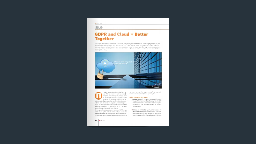 These days, with increasingly connected devices, homes, cars and public places, privacy has become a major concern for consumers. GDPR reshapes the way in which sectors manage data, as well as redefines the roles for key leaders in businesses. Panagiotis Kouris, CEO at Office Line SA describes how GDPR affects every organization that processes EU residents’ personally identifiable information, in addition to the possibility of a large fine for a non-compliant organization. He also mentions, that in order to become GDPR compliant, you don’t just need some tools; you need to organize your approach to 4 key axes: “Discover”, “Manage”, “Protect”, “Report” along with a thorough analysis, plan and detailed checklist that covers all aspects and processes involved. To simplify your path to compliance, Office Line offers a vast solutions portfolio, with the most comprehensive set of compliance offerings, to help develop your own GDPR plan.